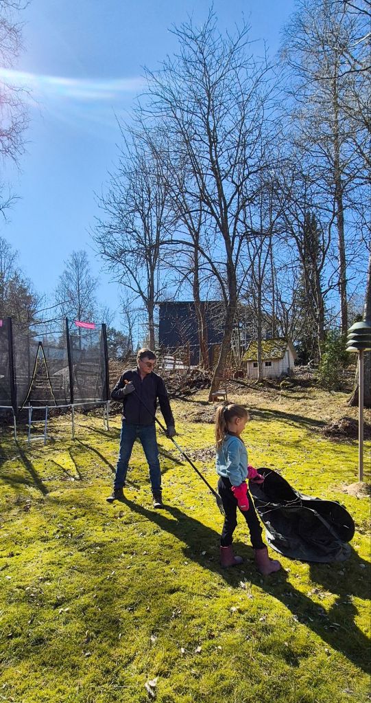 Raking is pretty far down the list of my favourite things to do. But there is some satisfaction in having a tidy yard. At least it has been dry, which makes raking easy. Keeping girls at task was harder.