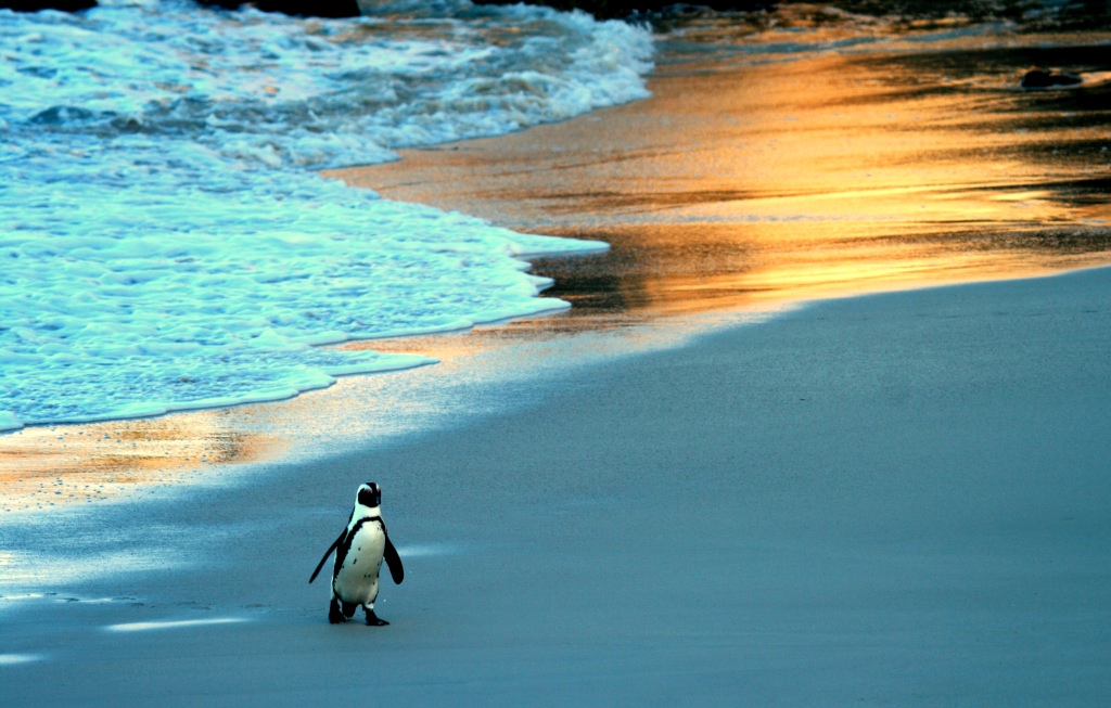 Penguins are typically happy in groups. However, there is always one lone rider.